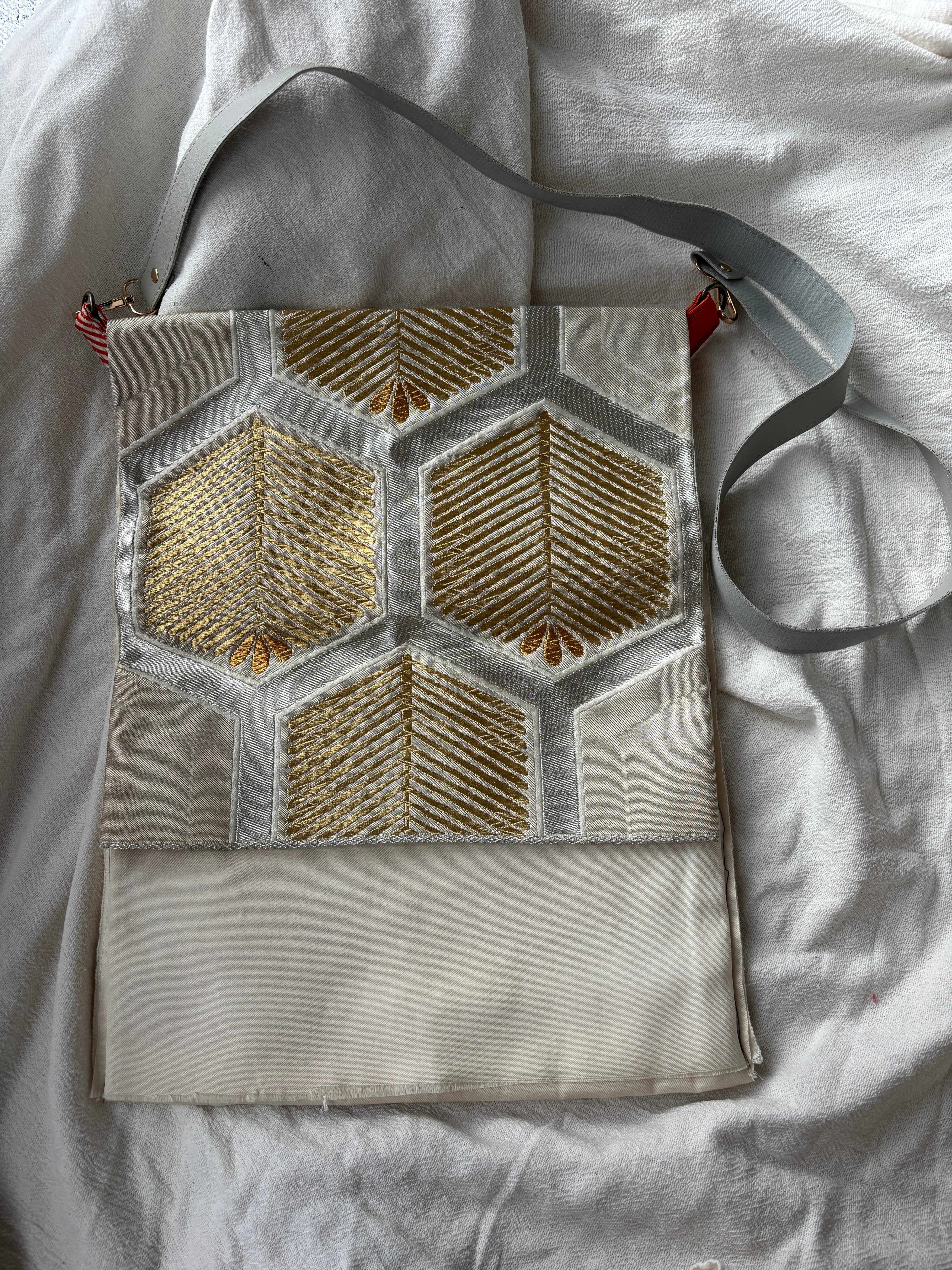 【帯ショルダーバッグ】は、伝統的な帯をリメイクして作られたユニークなショルダーバッグです。美しいデザインと機能性を併せ持ち、どなたにもお使いいただける魅力的なアイテムです。