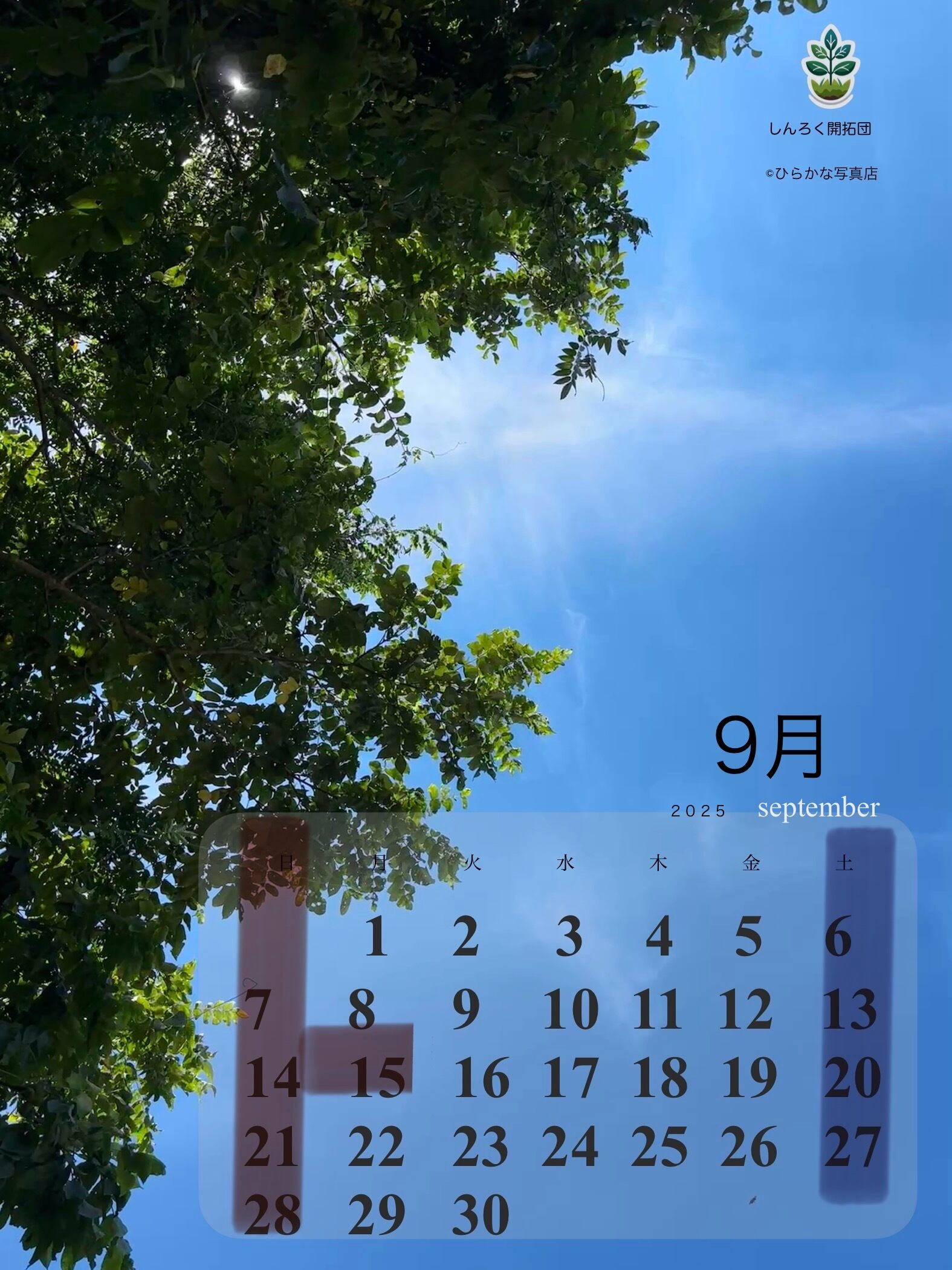【9月カレンダー しんろく開拓団コラボ】は、青空と大葉の美しいデザインが印象的なカレンダーです。ハガキサイズで持ち運びにも便利なので、どんな場所でも爽やかな風を感じられるアイテムとなっています。